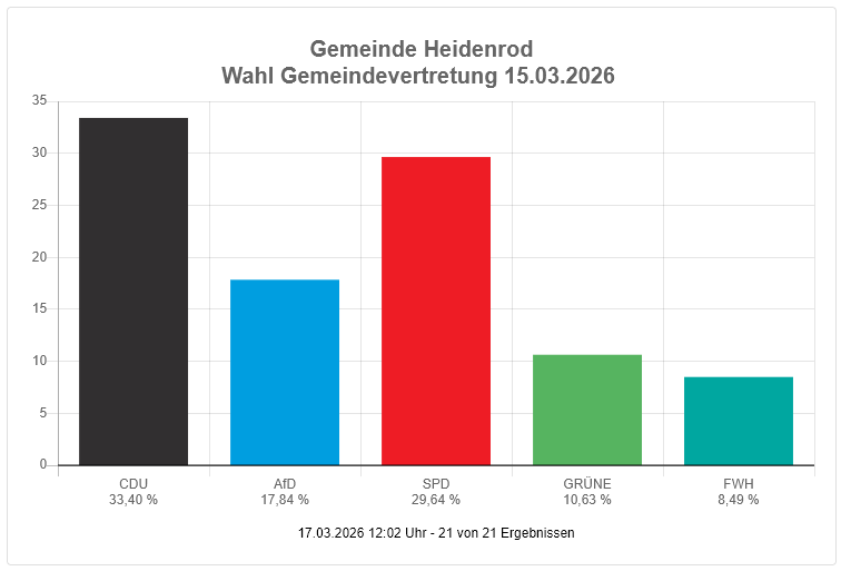 | Heidenrod | 5 | 17,84 % |