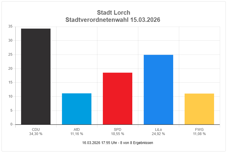 | Lorch | 2 (Neueinzug) | 11,16 % |