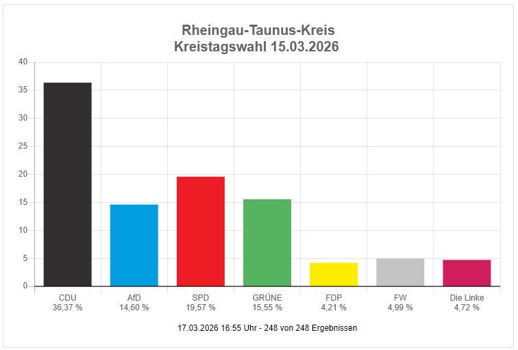 | Rüdesheim am Rhein | 3 (Neueinzug als Fraktion) | 9,3 % |