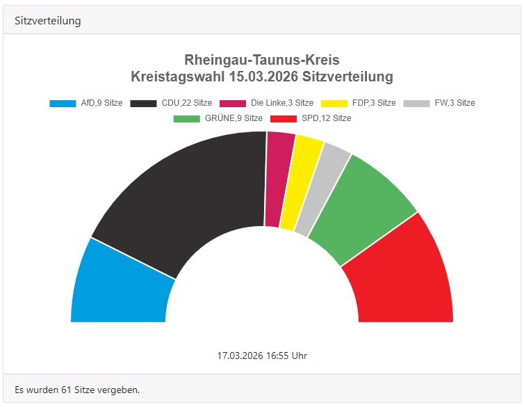 Die AfD hat sich in mehreren Gemeinden des Rhein-Taunus-Kreises etabliert und zeigt damit eine zunehmende politische Relevanz. Besonders stark war ihr Einfluss in Heidenrod mit 17,84 % der Stimmen und 5 Sitzen. Bei den aktuellen Kommunalwahlen im Rhein-Taunus-Kreis konnte die AfD signifikante Erfolge verzeichnen und insgesamt 14,6 % der Stimmen erhalten, was zu 9 Sitzen im Kreistag führte. Die folgenden Städte und Gemeinden haben Sitze im Stadtparlament an die AfD vergeben: